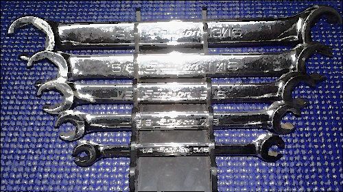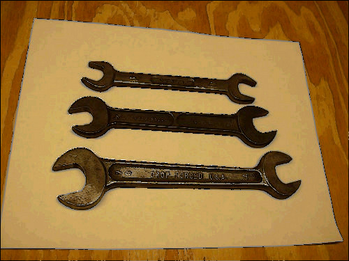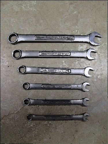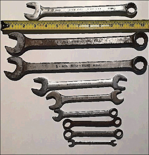 The wrenches are used but still in good condition. The plastic tray they come shows a little wear where they have been stored. The sizes goes from 1/4" to 15/16".