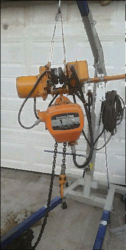 Up for auction is a Harrington 2-ton single speed electric chain hoist with top hook and push trolley. Also includes a canvas chain container and brand new - in the box 2-button pendant. THIS HOIST HAS BEEN INSPECTED AND LOAD TESTED BY A QUALIFIED TECHICIAN AND FOUND TO BE IN PROPER OPERATING CONDITION!!