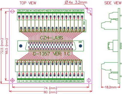 40-pin Half-Pitch/0.05" D-SUB Female Breakout Board, DSUB, SCSI, Terminal Module