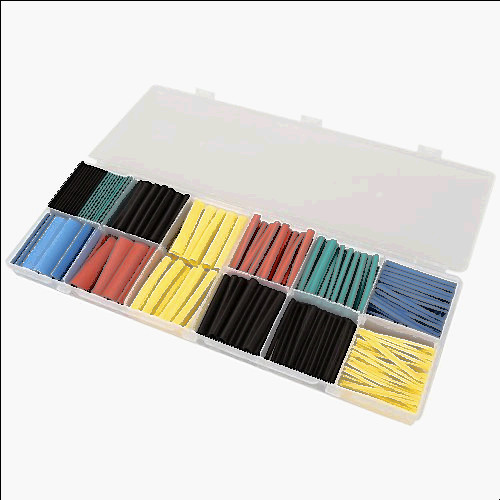 42 Pc Waterproof Adhesive Marine Heat Shrink Tubing Sleeve Assortment with Case Polyolefin marine heat shrink tubing has a shrink ratio of 3:1 and a temperature range to 250 degrees Fahrenheit, making it suitable for electrical, insulation and cable bonding. The 42-piece marine heat shrink tubing assortment includes 1/8", 3/16", 1/4", 1/2" and 3/4" diameter sizes. Protect your wiring from moisture and dirt with heat shrink tubing.