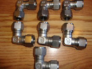 (5) NEW PARKER 8EBU-S 316SS 1/2" TUBE UNION ELBOWS W/ZINC PLATED STEEL NUTS