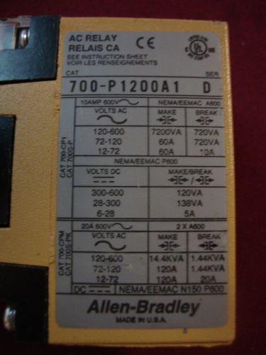 700-P400A1 ALLEN BRADLEY SER. A BULLETIN 700 TYPE P DIRECT DRIVE AC RELAY