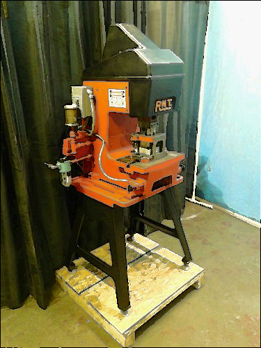 This listing is for a RMT toggle press. Believed to be 10 ton Serial No. 6VSG/A2531 Looks like a Model 10C 2" Stroke 8" Shut height Mounted on a heavy duty steel table pneumatic press plastic guard (cracked along one edge, still functional) This press is in good condition.