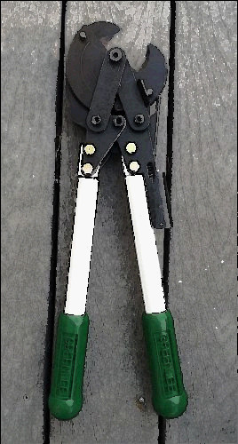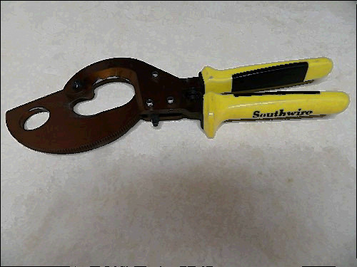 SOUTHWIRE ELECTRICIAN'S TOOL- HEAVY DUTY, RATCHETING CABLE CUTTER MODEL CCPR400- COPPER, YELLOW HANDLE PRE-OWNED TOOL VERY LIGHTLY USED, IN VERY GOOD CONDITION, EXCELLENT WORKING CONDITION. FEATURES: Cuts up to 750-kcmil copper and 1000-kcmil aluminum cables 2-step ratcheting mechanism for fewer strokes per cut Quick-release lever opens blade during operation. Hardened-steel cutting blades.