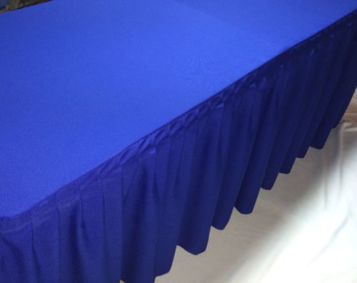 4' ft. Fitted Polyester Double Pleated Table Skirt Cover w/Top Topper Royal Blue