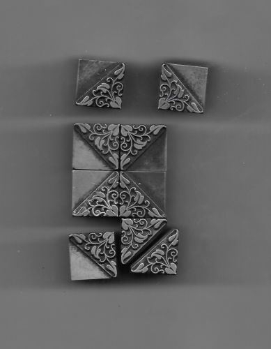 4 Vintage Metal Letterpress Printing Blocks- Floral Corner Border Dingbat Accent