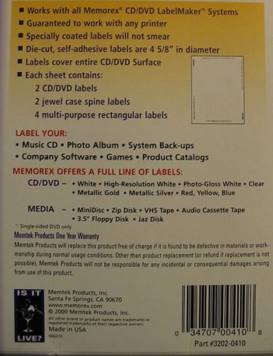 Memorex White CD Labels, Matte Finish. 300 Pack