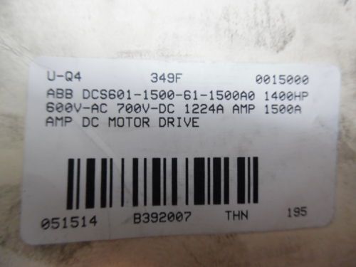 ABB 1400 HP DC MOTOR DRIVE, DCS601-1500-61-15000A0, SN: 04090073A9261430, USED