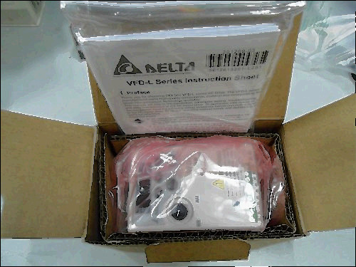 THIS UNIT IS NEW BUT HAS SHELF WARE, AND WAS BEING WIRED FOR TEST A PLASTIC TIP ON DOOR COVER CAME OFF. THIS IS A DELTA SINGLE PHASE 200-240VAC INPUT TO 3 PHASE OUTPUT. UP TO 1 HP MOTOR.