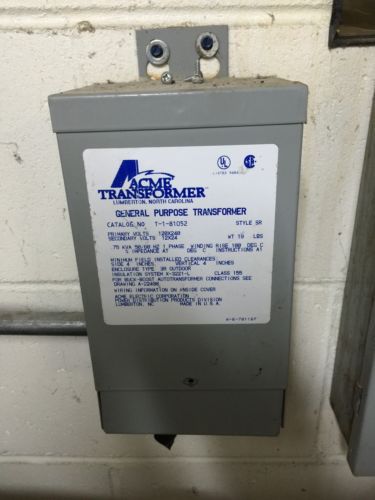 ACME T-1-81059 SR 75KVA 75 KVA PRI,: 120X240V SEC.: 16X32V 1PH TRANSFORMER
