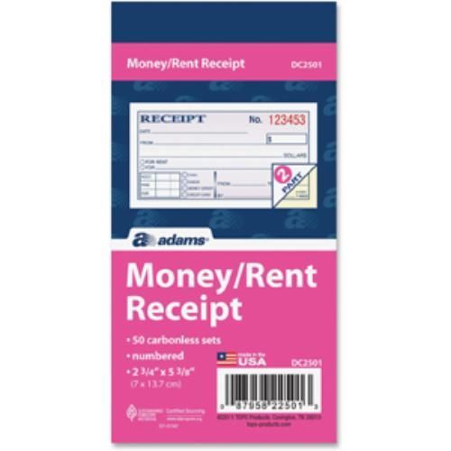 Adams Money/rent Receipt Book - 50 Sheet[s] - 2 Part - 5.38" X 2.75" (dc2501ws)