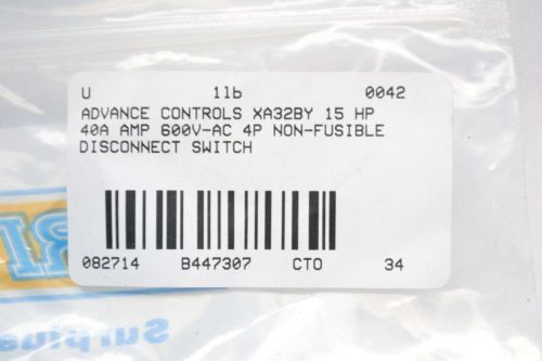 ADVANCE CONTROLS XA324BY 15HP 40A 600V-AC NON-FUSIBLE DISCONNECT SWITCH B447082