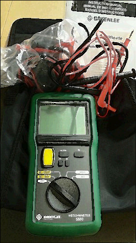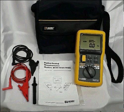 This is a AEMC Instruments Mega-Ohmmeter 1210 , 500V With All Accessories Made In USA!It's in good shape and works. It's self power by turning the handle to generate power. It comes with all of the original cables.