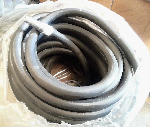 You are viewing a Bullard V20 100 ST 100 foot 1/2 inch air supply hose. It is new and unused but sat in a warehouse for some time. The rubber is soft and pliable with no signs of drying.