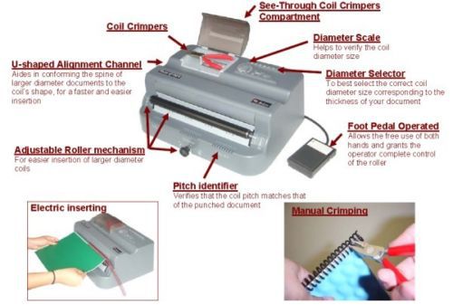 Finish@Coil M ELECTRIC COIL INSERTER & MANUAL CRIMPERS **will ship same day, depending on manufacture’s availability** With its adjustable full-size rollers, this heavy-duty electric coil inserter makes coil inserting surprisingly fast and easy, even on the extra-large diameter sizes. The Akiles Finish@Coil M is ideal for operators that demand versatility & productivity… And a must for all binding centers with large workloads. Product Details See-Through Coil Crimpers Compartment: Provides convenient storage and helps to ensure that your crimping pliers don't get lost. Spiral Coil Diameter Scale: Helps to verify the coil diameter size. Spiral Coil Diameter Selector: To best select the correct coil diameter size corresponding to the thickness of your document. Foot Pedal Operated: Allows the free use of both hands and grants the operator complete control of the roller. Pitch identifier: Verifies that the coil pitch matches that of the punched document. Adjustable Roller mechanism: For easier insertion of larger diameter coils. U-shaped Alignment Channel: Aides in conforming the spine of larger diameter documents to the coil’s shape, for a faster and easier insertion. Coil Crimpers: Included with every unit. Manual Crimping Electric inserting Specifications MODEL: Finish@Coil M INSERTING: Electric CRIMPING: Manual MOTOR: Heavy-Duty INSERTING ROLLER: Full size 11-3/8" EPDM roller BINDING CAPACITY: Up to 50mm (1-7/8)" ADJUSTABLE ROLLER: YES MACHINE DIMENSIONS: 14.5" L x 10.5" W x 5.75" H CARTON DIMENSIONS: 17" L x 14" W x 10" H WEIGHT & VOLUME: 15.6 Lbs & 1.37 Cbft WARRANTY: One year (Call us if you have any questions) 800-398-5283 / 714-238-1133 Or Send us an eBay message I know you are going to Best Offer this one... Warranty: Manufacturer’s one year limited warranty. About Print & Finishing Solutions: For additional company information please call 800-398-5283 or 714-238-1133 or send us an eBay message. We are based out of Southern California and are in the Los Angeles time zone (GMT -8). Habla Espanol: Para obtener asistencia en espanol, por favor y contactenos por telefono o e-mail y solicite ayuda, "Habla Espanol." Si preferir por e-mail, por favor y comunicarse en espanol. Apoyo en espanol esta disponible en todos los aspectos de nuestro negocio, incluyendo las partes del equipo y las ventas suministro, de servicios de equipos y servicio al cliente. Para obtener asistencia en espanol, por favor y contactenos por telefono o e-mail y solicite ayuda, "Habla Espanol." Si preferir por e-mail, por favor y comunicarse en espanol. Apoyo en espanol esta disponible en todos los aspectos de nuestro negocio, incluyendo las partes del equipo y las ventas suministro, de servicios de equipos y servicio al cliente. eBay Listing Specifications: We make every effort to provide proper listing specifications but in many cases we rely on internet and manufacturer based information, which is always subject to change. At times when selling product that is not one of our core product lines or an older product, we may not have correct information and so purchasers must do their homework and know what they are buying. If the purchase justifies a personal or 3rd party visit, please do so. Shipping: In the majority of our eBay listings we offer a ballpark freight estimate for shipments within the continental USA. We receive a lot of requests to provide freight quotes and the process is very timely and costly. When possible, please work with our ballpark estimates for shipments within the continental USA. If you require a firm freight quote to anyplace in the world, please make your request by sending us an eBay message. We prefer to provide freight quotes to serious buyers that are willing to provide us their e-mail and physical address. We will also need to know if you will be receiving the freight at a (1) commercial or residential address, and (2) in the case of larger machinery, if you have a dock or forklift for receiving the freight (do you require a ground level delivery with a lift-gate?). Generally residential and lift-gate deliveries cost additional. (3) If you are considering a used piece of machinery, please know that in most cases a crating / packaging fee will apply. We ship domestically and worldwide by UPS, UPS Freight, UPS Ocean, FedEx, most common LTL carriers, and though special arrangement with private trucks. We are also very happy to ship with the carrier of your choice. If there is a safe and economical way to get the freight to you, we are happy to work with your source. California Sales Tax: Sales tax will be added to California sales based on destination county and city. Note: PFS Reserves the right to refuse sale to any buyers with excessive negative feedback left for sellers. (800) 398-5283 Graphic-Arts Bindery and Finishing Machinery for the 21st Century Phone: (800) 398-5283 (714) 238-1133 Fax: (714) 238-1147 Please contact us today! We would be happy to answer your questions and concerns about a wide range of products. We offer: New, used, and refurbished machines Retail, wholesale, corporate, and government pricing Parts and supplies International service, installation, and warranty support Same-day shipments As your business partner, the success of Print & Finishing Solutions relies on the success of our customers and vendors. This philosophy is reflected in our motto, “Taking care of your business is our specialty.” Our team approach promotes an atmosphere of cooperation, and our primary goal is to work together for success. It is the goal of PFS to support our customers and their print-related machinery for the long term with intelligent, well-trained sales and service personnel. We have a complete line of presses and finishing equipment, including paper cutters, folders, drills, binders, collators, bookletmakers, cornerounders, hole punches, tabbers, joggers, punch and bind equipment, shrink wrap and packaging systems, staplers, stitchers, stock carts, padders, tri