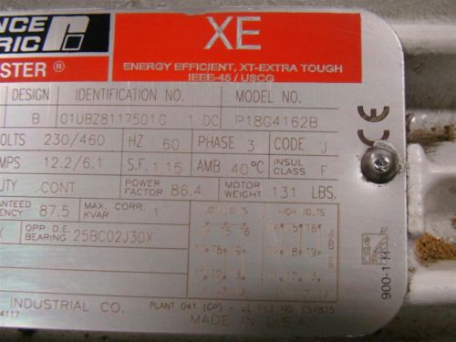 Reliance Electric 10hp XEX Motor 230/460, 1800 rpm, 215TC frame P21G1092G NEW