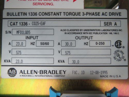 ALLEN BRADLEY 1336-C025-EAF 25HP 575V-AC ADJUSTABLE FREQUENCY AC DRIVE B404211