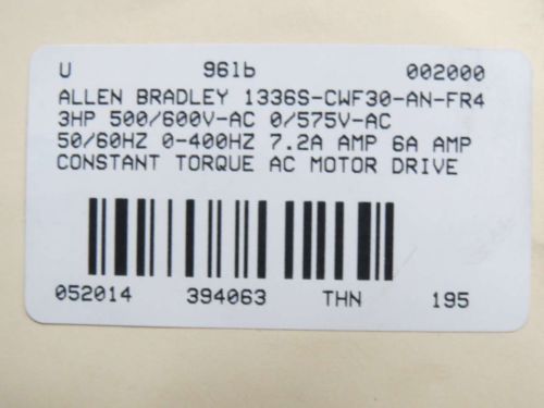 NEW ALLEN BRADLEY 1336S-BRF15-AN-EN4-L6 1.5HP 0-460V 3A MOTOR DRIVE D481950