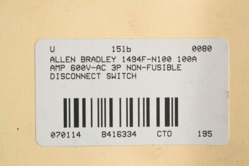 ALLEN BRADLEY 40021-569-01 REPLACEMENT 100A AMP 250V DISCONNECT SWITCH B338494