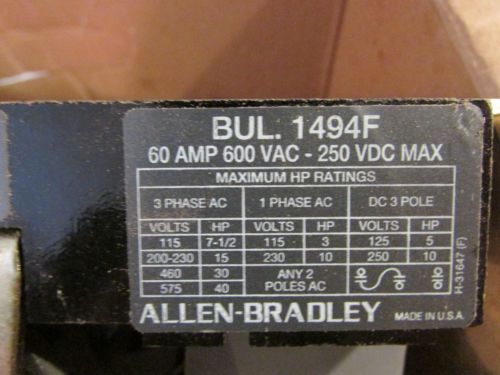 Allen Bradley disconnect switch 1494v-ds60 A,1494v-fsr266 A trailer,60 amp 250v