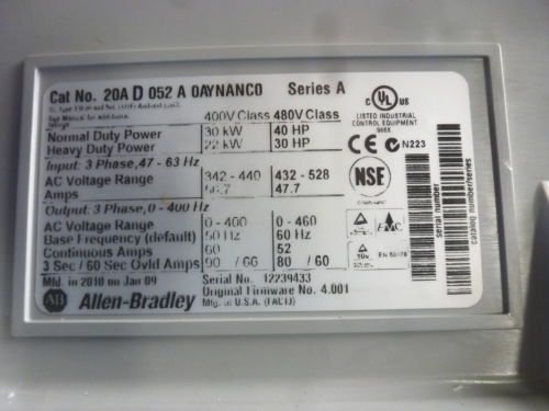 ALLEN BRADLEY 20BD077A0ANNANA0 /A 60HP