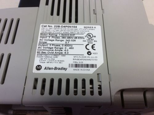 Allen Bradley 22A-D4P0N104 PowerFlex 4 2 HP Variable Frequency Drive