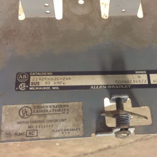 ALLEN BRADLEY 40/50/100HP SIZE 4 FVNR MCC BUCKET 2112B-EDB-4R-6P-26R M 102189