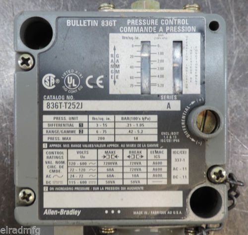 ALLEN BRADLEY, PRESSURE CONTROL SWITCH, 836T-T253J, SERIES A 12-150 PSI