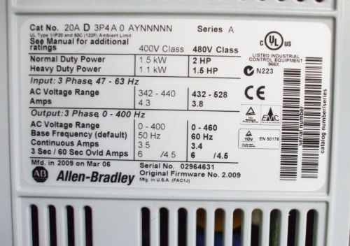 Allen-Bradley, PowerFlex 70 cat.#20A D 3P4A0AYNNNNN