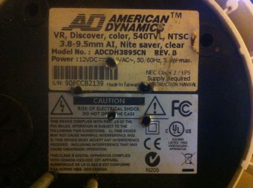 American Dynamics ADCDEH0309CN Indoor/Outdoor Color Dome Security Camera