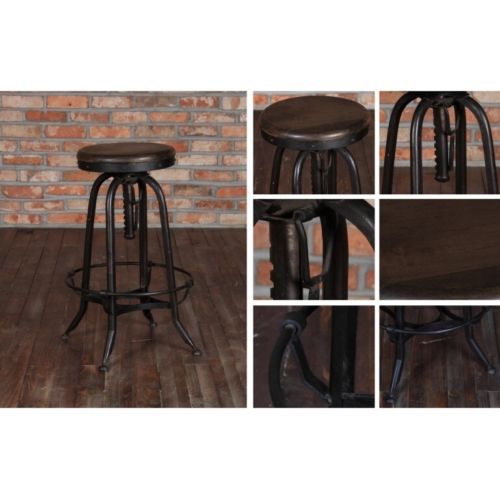 New Gladiator Rust Powder Coat Window Pane Metal Swivel Bar Stool w/ Wine Seat