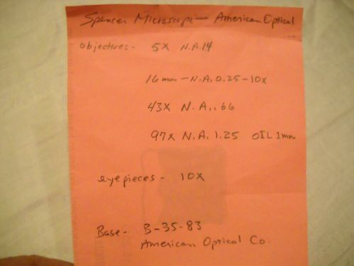 Seller Notes | “Microscope is in good condition. Please view the description and photos for a full description of condition.” |