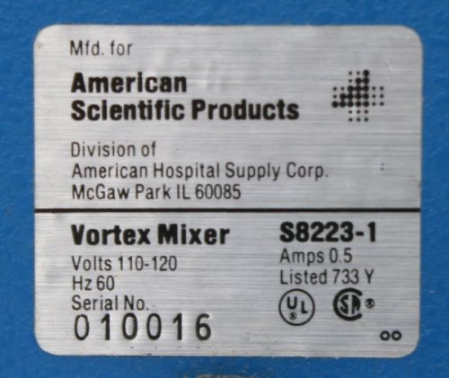 Search Us: Description American Scientific Products Vortex Mixer S8223-1 Used, tested and worked very nicely as shown in the photographs. Spun nicely across the dial. The front plate has some wear but it does not affect usability in any way. **Photos of this item are of the actual item being sold. In listings with quantities greater than 1, the photos will be 1 of the actual items being sold as a fair representation of the group. All items in multiple qty listings are of equal quality despite any minor variations in the cosmetic condition of the packaging.** Shipping All items are professionally packed using appropriately protective packing materials. Our shipping team usually has orders packed and shipped within 1 (one) business day of payment, however, some items require extra time to pack safely. The care we provide is necessary to prevent damage to often sensitive equipment. Handling time will be noted in the listing. If you have any questions or concerns regarding the timing of your specific order, please contact us. We will only ship to your verified PayPal or credit card billing address. If you require shipping to an address other than your current payment address, you will need to add and verify the alternate address to your payment account prior to finalizing your order. Domestic: Standard shipping methods are chosen at our discretion, usually either. USPS or UPS Ground. PO Box deliveries can only be shipped via USPS. All shipments are insured at the selling price. International: International shipments are generally handled via USPS Priority or Priority Express. Declared value is accurately stated and the package is insured at the selling price. International customers are responsible for all duties & taxes. Please check with your country's requirements before purchasing. Tracking: Tracking information is emailed automatically at the end of the day. UPS packages are picked up same day. Most USPS shipments are picked up the following day. Expedited Shipping: Expedited processing and delivery are available on most items but due to the nature of the equipment, it cannot be guaranteed. Please call to confirm any requests for expedited service. Freight It is strongly advised that you contact us to obtain a freight quote before purchasing items requiring freight shipping, especially if you are unfamiliar with freight deliveries. The carrier is chosen at our discretion unless you arrange your own service. Regardless of service, a handling fee is required for freight preparation. Standard pallets will incur a minimum $40 charge. Additional charges for crating or over-sized palletizing will vary. International customers must arrange their own freight service. Shipping Damages: If item arrives damaged by the carrier, please reject shipment and contact us immediately. If you do receive the package, submit clear images of the packaging/box and damaged item from multiple angles. DO NOT discard the packaging. Save packaging for carrier claim. Carrier will often come back to pick up the shipment. We cannot file a claim without the packaging and proper images. Thank you for your help and understanding. We welcome free local pickup by appointment Mon-Fri between 10-5. Payment We accept the following payment methods: PayPal, Credit Card, Wire Transfer, Payment on Pick-up. Payment needs to be made within 5 days of the close of auction, purchase, or acceptance of best offer. Additional time is often required for freight quotes or adjustments to invoices. In these cases, payment must be completed within 5 days of final invoice. Other Information Customer Satisfaction We want you to be happy with your purchase. If for any reason you are not satisfied please contact us directly rather than opening a case. To do so, please click 'Contact Seller' and select "other" as the option to send us a message. Choosing any other option will force you to open a case against us. Cases, even for simple questions, now damage our seller rating as part of the new "defect rate" system. We conduct an honest business, with a long eye to our brand, and will always work to make your experience with us a good one. Returns Returns are accepted within 14 days of item receipt if the item does not meet the condition described. If you need to return an item, contact us either by calling the phone # in your invoice, by direct email or by clicking 'Contact Seller' and selecting "other" as the option to send us a message (thus avoiding opening a case unnecessarily.) We will provide an RMA # which must be affixed to the returning package. Returns authorized for any other reason will be subject to a 20% restocking fee and shipping will not be refunded so please look carefully at the photographs and description, and if you have any questions please ask before purchasing. Any item that is returned without an RMA # will be refused. Any non-working components or missing pieces will be noted in the description, so please read carefully before purchasing. Any components not specifically listed in the description (ie: power cords, test equipment, original box, etc.) are not included with the purchase. When you receive a Guaranteed item from SocoTek, it should perform as described. In the rare situation that this is not the case, we will send a replacement upon safe return of the original item within 14 days of receiving the item. If a replacement is not available we will honor the terms of our Money-Back Guarantee. Legal SocoTek warrantees and represents that the goods are as they are described in the above listing. We will accept returns of the goods only if they fail to meet the descriptions above. SocoTek specifically disclaims any implied warranties of title, merchantability, fitness for a particular purpose and non-infringement. Some states do not allow the disclaimer of implied warranties, so the foregoing disclaimer may not apply to you. This warranty gives you specific legal rights and you may also have other legal rights that vary 
