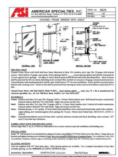 | Seller Notes | “New may be dusty from ware house storage. May ship out of original box. American Specialties ASI 0625 Channel Frame Mirror with Shelf /American Specialties ASI 0625 1620 Channel Frame Mirror with Shelf 16"w x 20"h” |