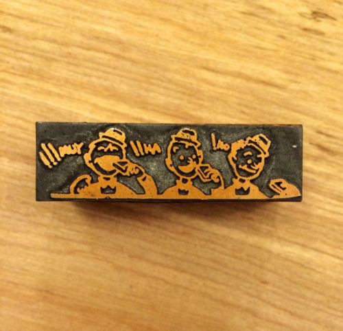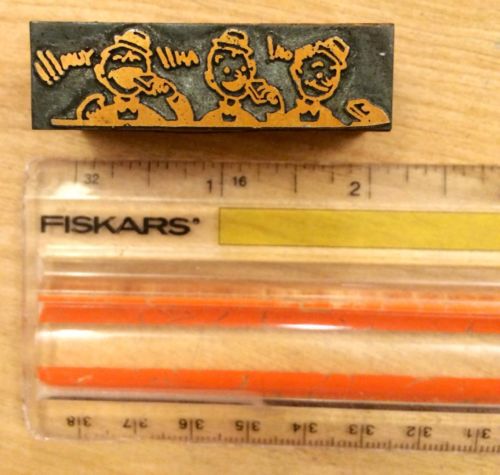 Antique TWO MEN FISHING In A Boat SOLID Lead Letterpress Print Block 2"