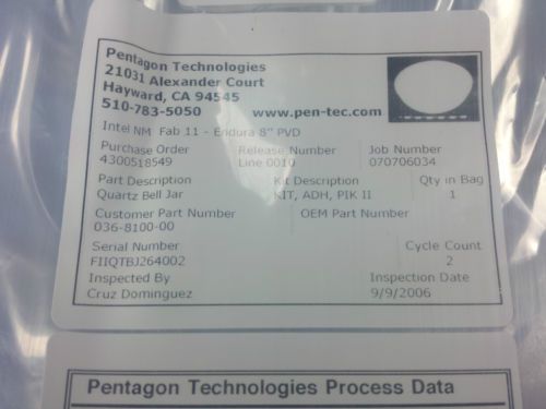 Applied Materials AMAT PT-0643-0012 Cover Top Quartz 8" Endura PVD PIK 2 Kit