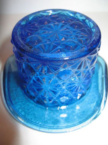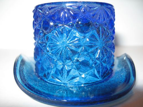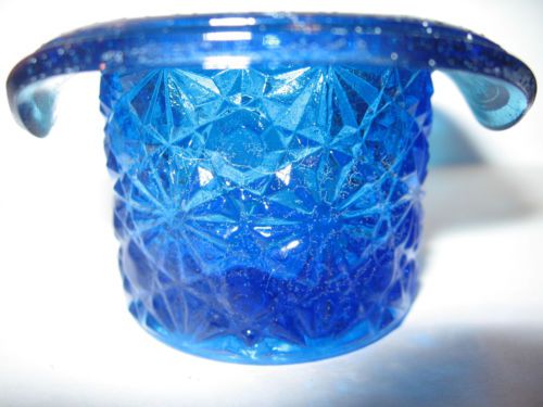 blue milk glass raised salt dip cellar celt pattern master opaque slag pedestal