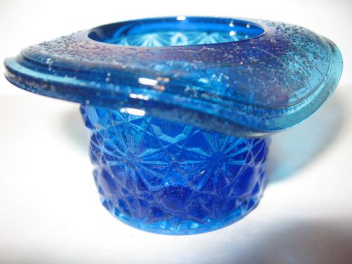 Cobalt blue Carnival glass salt cellar celt duck on nest basket / dip boyd swan