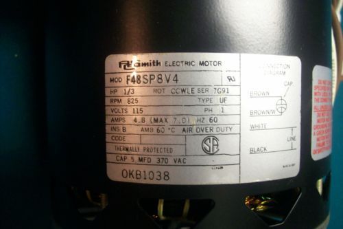 A.O. Smith 844-0052, VOLT-115 RPM-1725 AMP-3.0 Hz60, AC MOTOR