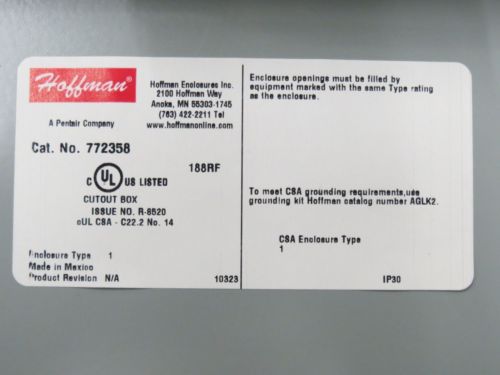 SQUARE D H363RB 3 PHASE 100 AMP 600 VOLT NEMA 3R FUSED DISCONNECT NEW IN BOX
