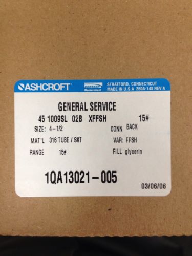 (D4) 1 NIB ASHCROFT 35W1005PH 02L XUL PRESSURE GAUGE 0-80 PSI