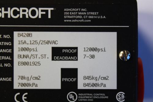 ASHCROFT # B429V-X6B PRESSURE CONTROL SWITCH, "NIB"
