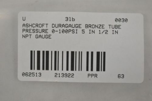 LOT 2 ASHCROFT DURAGAUGE 0-100 PSI BRONZE TUB PRESSURE GAUGE 1/2IN NPT B213895
