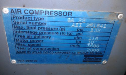 Atlas Copco Belt Drive Rotary Screw Air Compressor - 15 HP, Model GX11FF