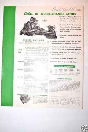 ATLAS METAL MACHINE TOOLS CATALOG M.50 1950 #RR163 lathe shaper Milling Machine