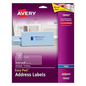 Avery Easy Peel Clear Shipping Labels for Inkjet Printers, 1.3 x 4-Inches, Pack