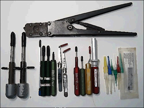 THIS TOOL KIT IS MILITARY SURPLUS WE ARE SELLING THEM AS IS, AS RECEIVED. ALL TOOLING LOOKS TO BE IN GOOD SHAPE FUNCTIONAL 2 CRIMP TOOLS M22520/1-01 WITH TURRET M22520/5-01 WITH 3 CRIMP DIES 13 INSERTION INSTALL AND EXTRACTION REMOVAL TOOLS IN A METAL CARRYING CASE AVIATION AIRCRAFT AVIONICS TOOL KIT MIL SPEC COAX & CONTACT PIN CRIMP I/R TOOLS