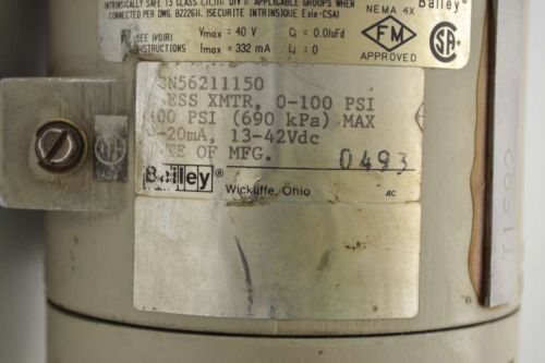 BAILEY PTSPGF110012101 180PSI-MAX 42V-DC 0-100PSI PRESSURE TRANSMITTER B401499