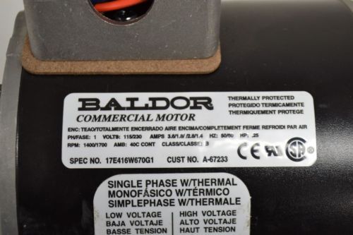 Baldor 1/4 HP Motor, Mod. # L-3403 115/230 Volt, 1725 RPM, 1 Phase