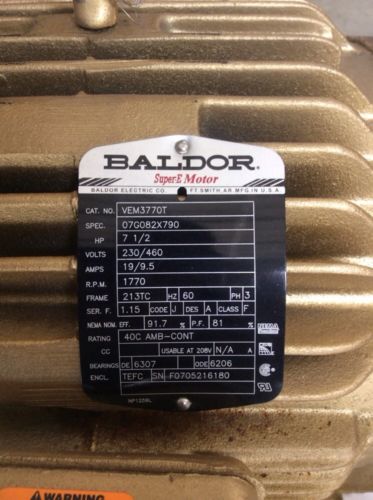 NEW BALDOR M3770T 7.5HP 208-230/460V-AC 1765RPM 213T 3PH AC MOTOR D441982